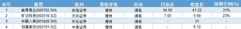 东方财富Choice数据显示,近一周有4家公司被机构下调评级。舍得酒业、旷达科技、中国人寿、劲嘉股份等个股“榜上有名”。